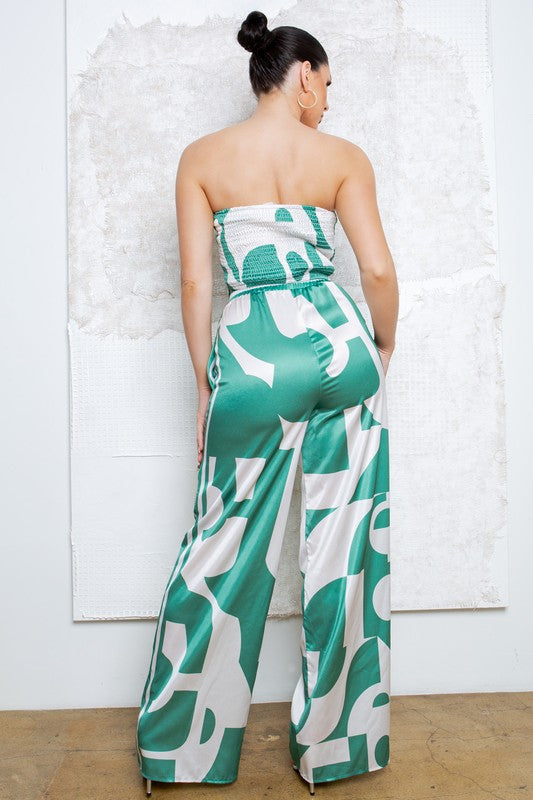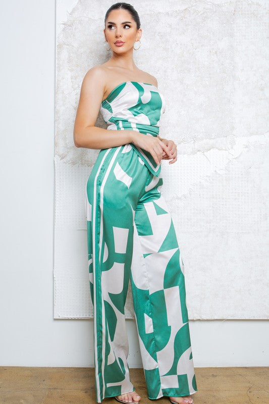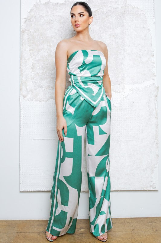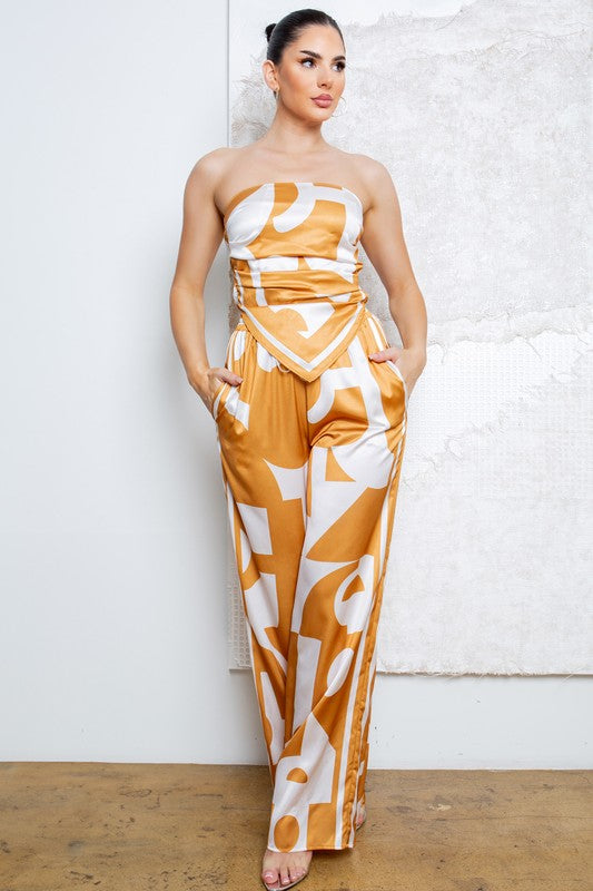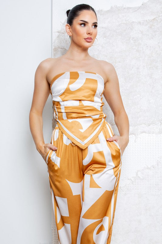 Strapless Satin Effect Scarf Top and Pants Set