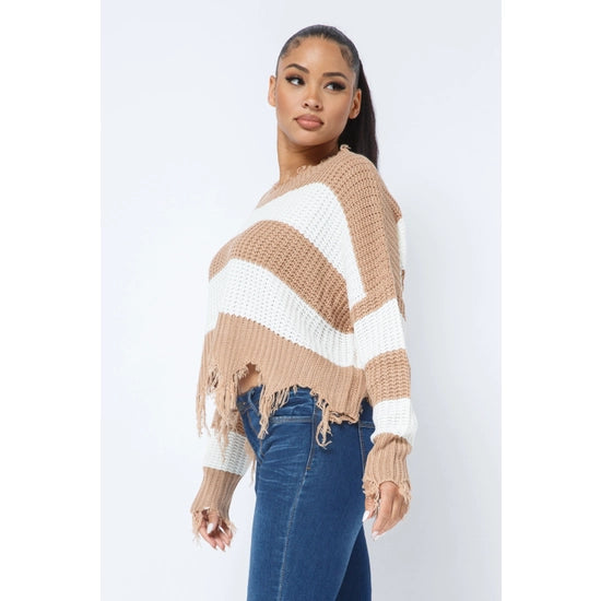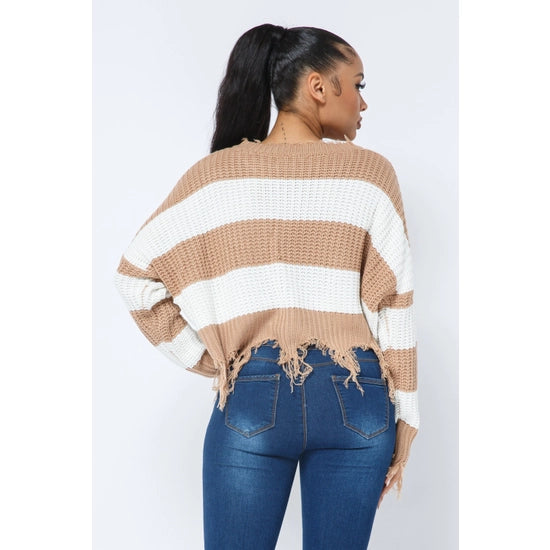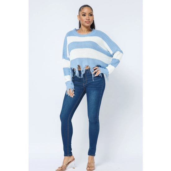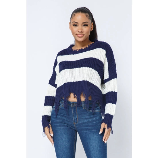 Women's Stripe Knit Distressed Cozy Sweater