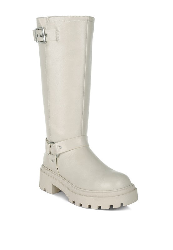 The harness boots have a rustic aesthetic with the buckle belt detail while the soft cushion insole gives them a relaxed fit that cuts strain. These long winter boots with easy to wear zipper closure would pair beautifully with some faux leather or woolen skirts and eccentric tops and shirts from London Rag!