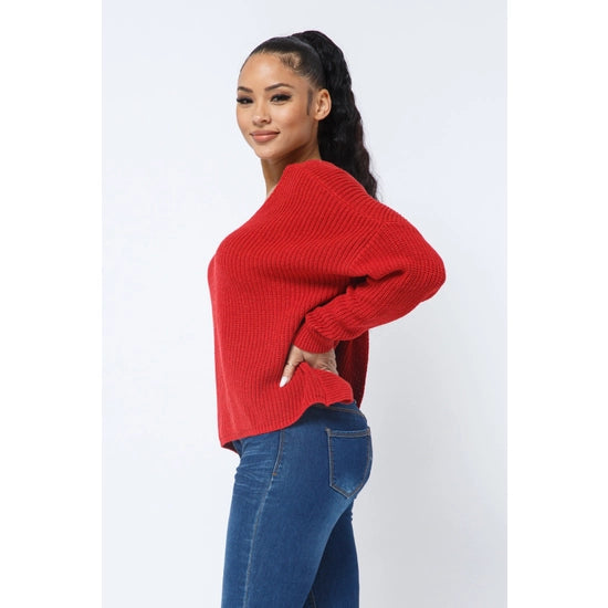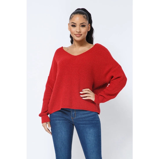 Stay cozy and stylish with this women's long-sleeve sweater. The open back with a twist detail adds a touch of chic to any look. The loose fit ensures all-day comfort. Dress up or dress down for the perfect outfit.