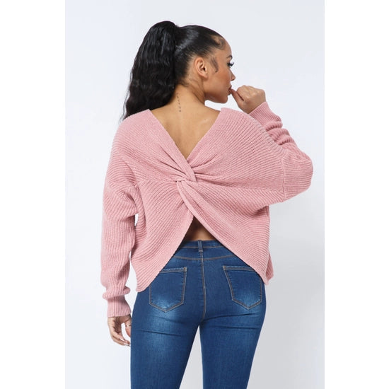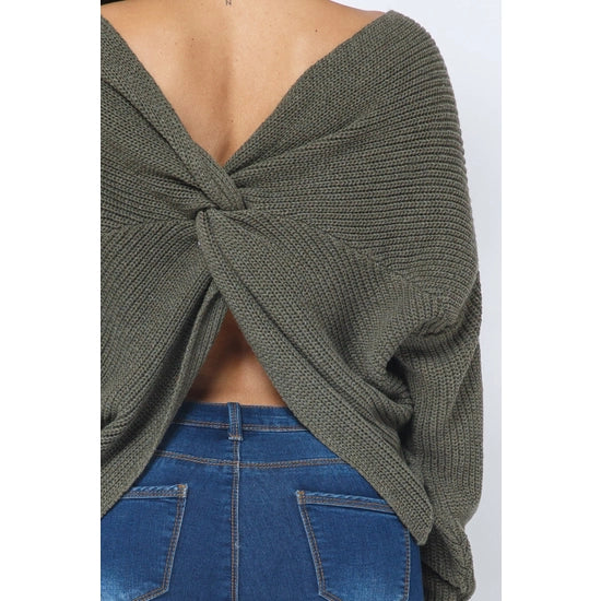 Women's Twist Open Back Loose Fit Long Sleeve Cozy Sweater