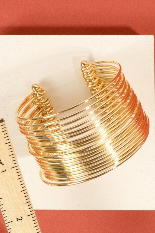 This intricately designed Wire Metal Layered Open Bracelet is truly a piece of art. Delicate yet durable layers of wired metal create a timeless look that’s perfect for any occasion. Feel beautiful and special with this trendy and sophisticated bangle.