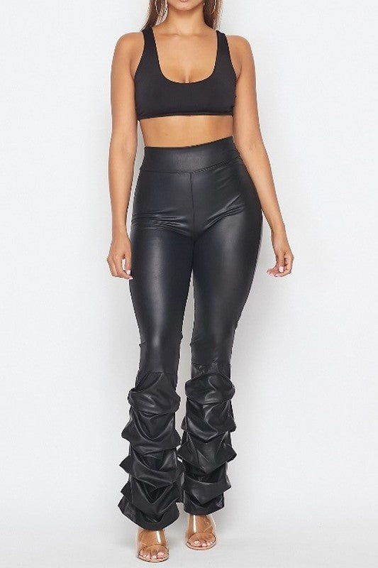 Elevate your style with these Women's Black High Waist Faux Leather Ruched Pants. Crafted from premium faux leather and featuring a high waist design, these pants offer modern sophistication with a hint of luxe. Refined ruching adds a subtle yet elegant detail, perfect for a refined and stylish look.