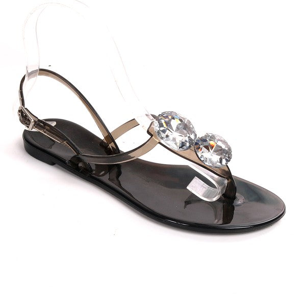Women's Black Rhinestone Flat Thong Jelly Sandals