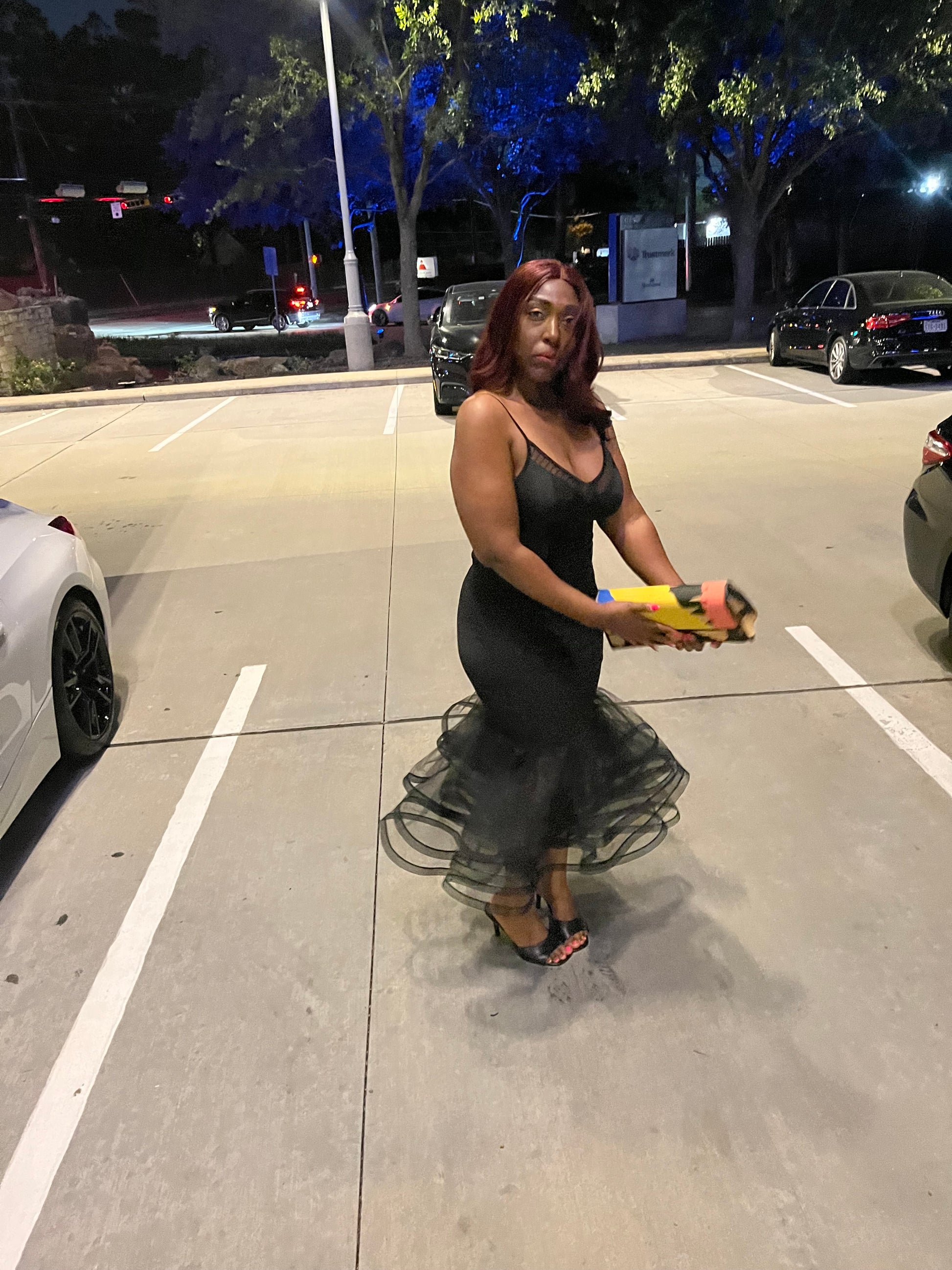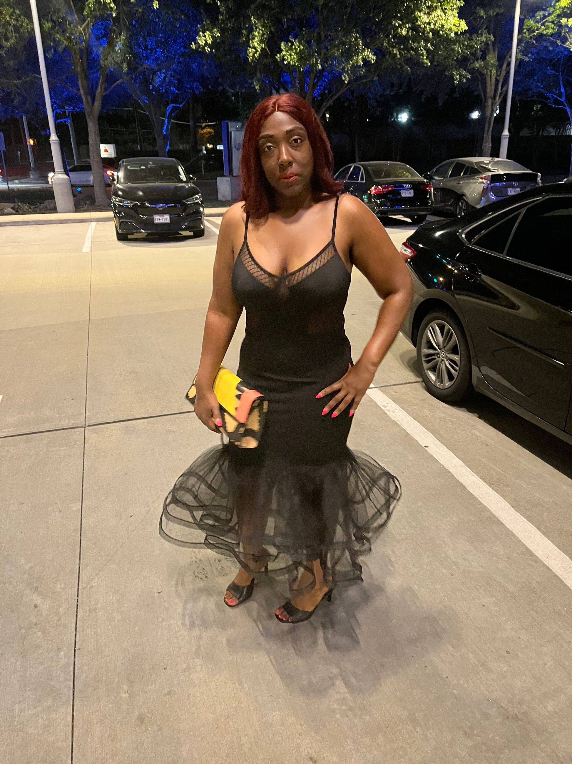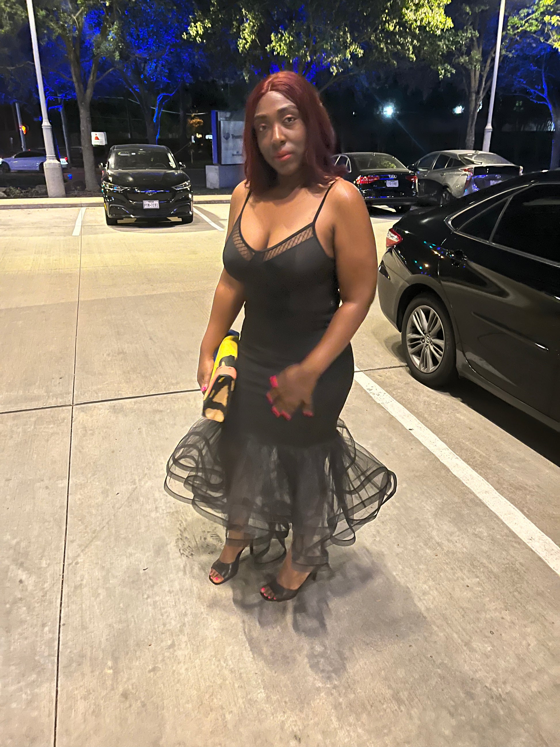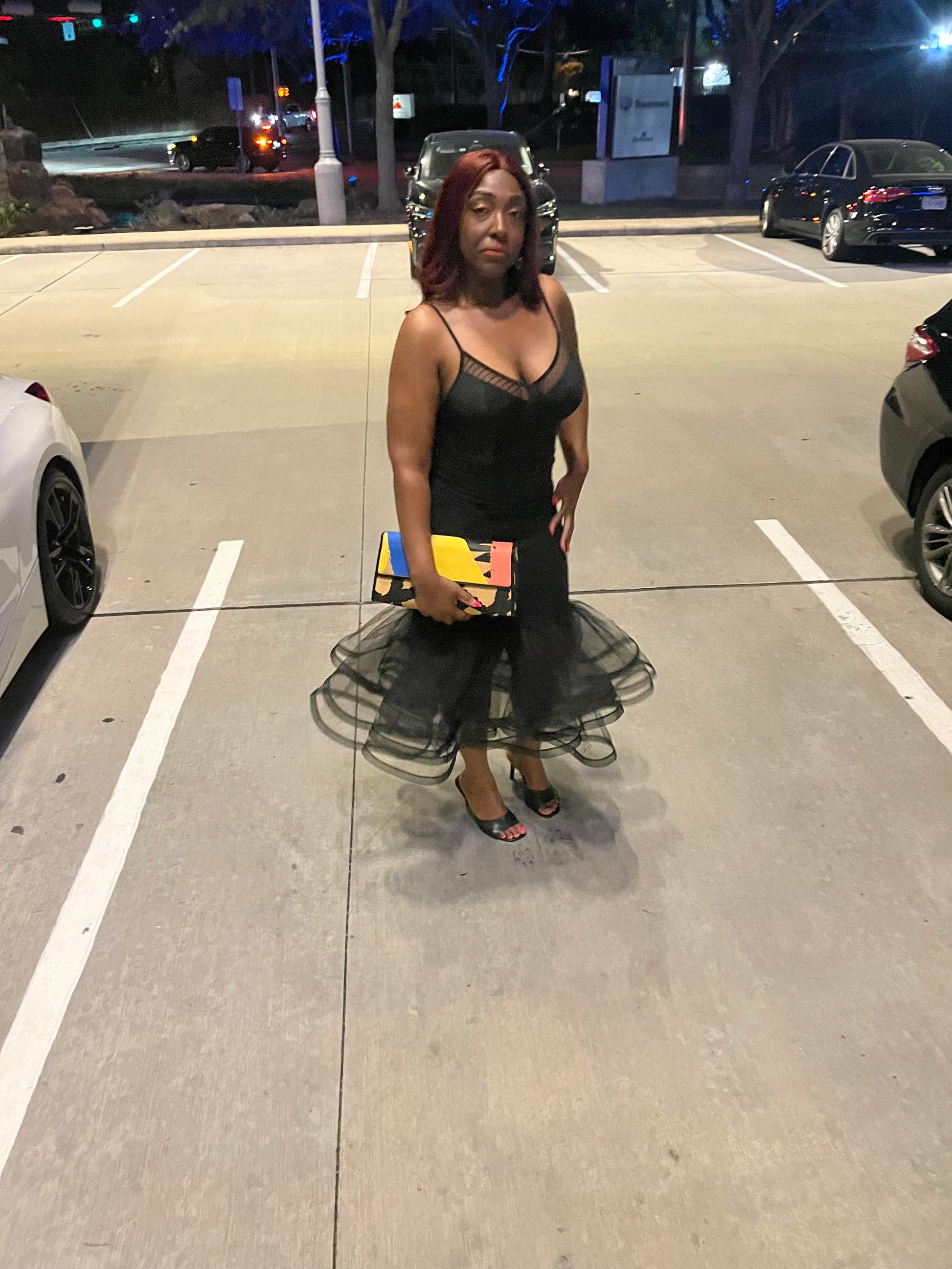 Plus Size Black Solid Tiered Layers Midi Mermaid Skirt