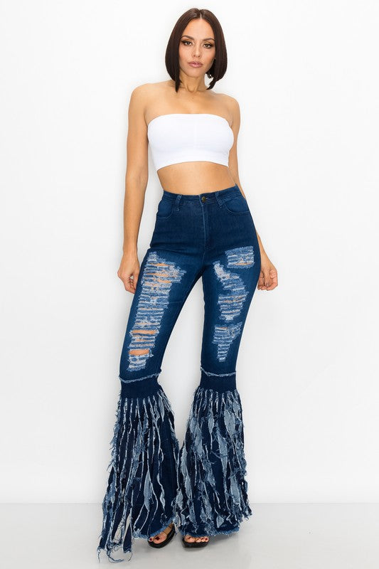 Women's High Waisted Bell Bottom Distressed Jeans
