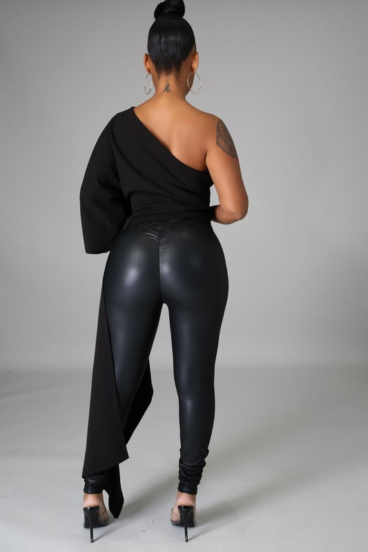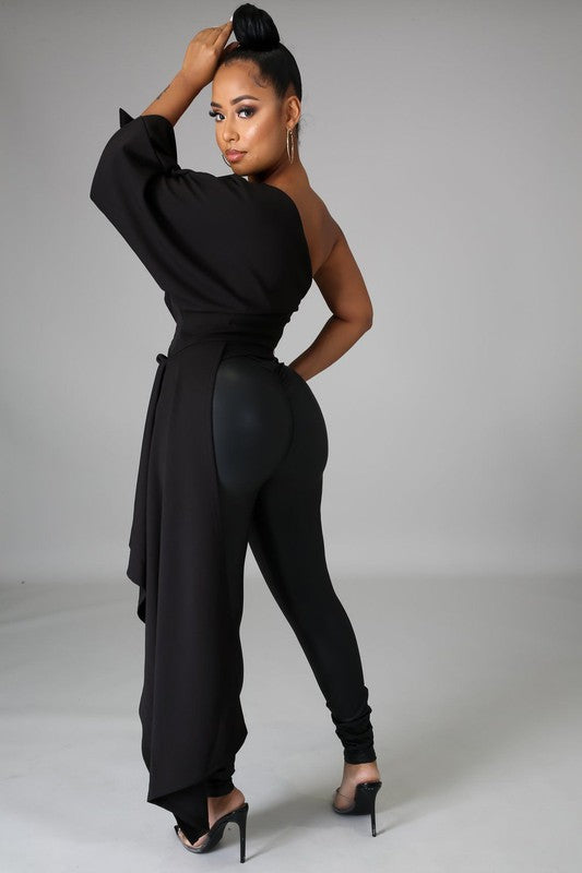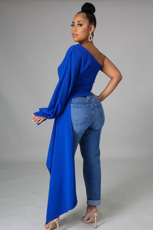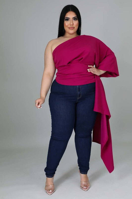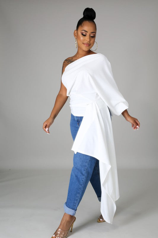 Be daring and unique in this asymmetrical one-shoulder top! You'll be sure to stand out with its waist-cinching draping and asymmetrical hemline. Take the fashion world by storm!