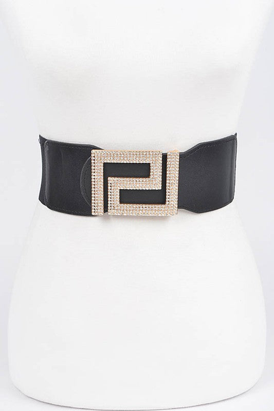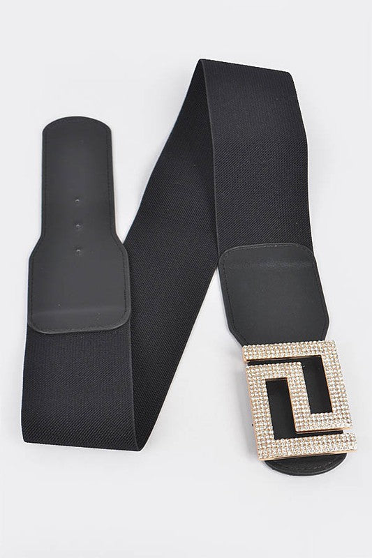 Metal Buckle Plus Size Elastic Belt * POLYURETHANE/ ELASTIC. * APPROX. WIDTH:3". LENGTH:43"