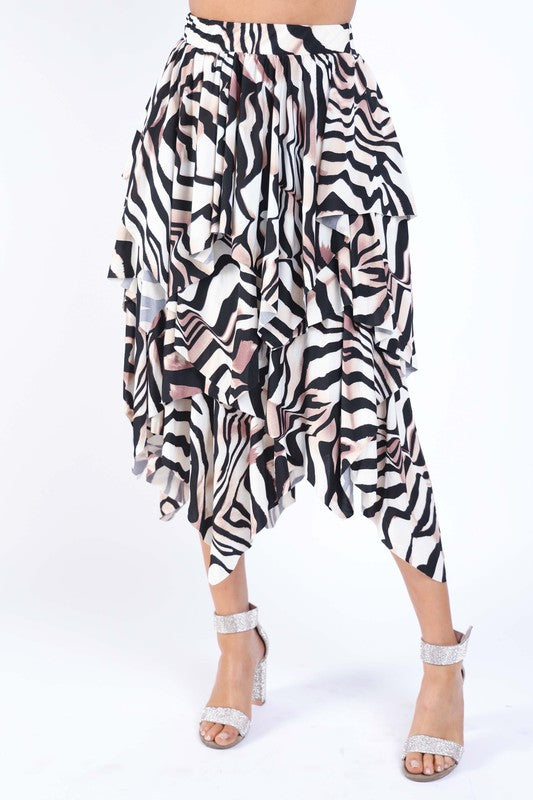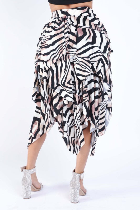 Women's Zebra Draping Midi Skirt