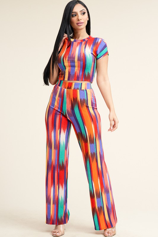 Elevate your wardrobe with this multi-hued Antenna print two-piece set,
