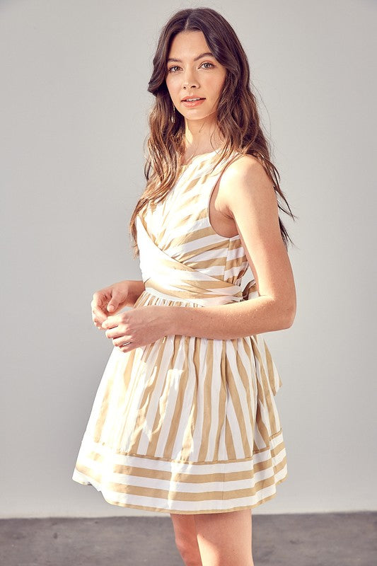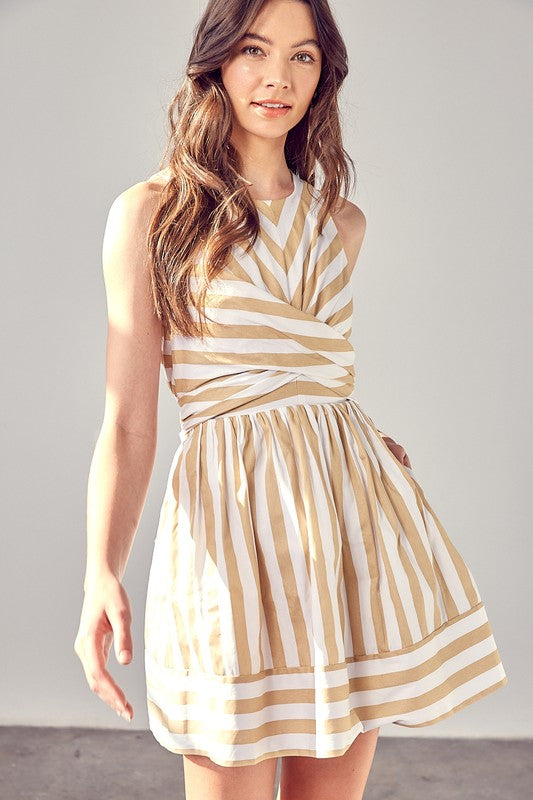 The front cross back tie dress is a stylish and unique addition to your wardrobe. With its cross-over front and tie-back detailing, it offers a contemporary twist on the classic dress silhouette. This dress is perfect for various occasions, adding a touch of elegance and a fashion-forward statement to your look, making it a versatile and chic choice for any fashion-conscious individual.