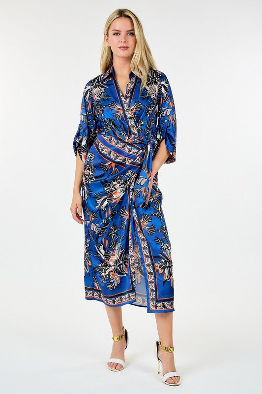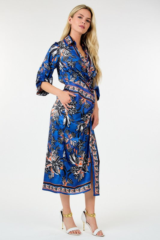 Kimono Wrap 3/4 Sleeve Printed Dress