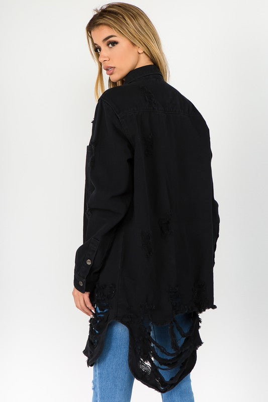 Look stylish and feel confident in our Long Oversized Denim Shirt Jacket. Its relaxed fit and lightweight fabric provide superior comfort and style. Perfect addition to your wardrobe, this denim jacket gives you a classic look that never goes out of style!