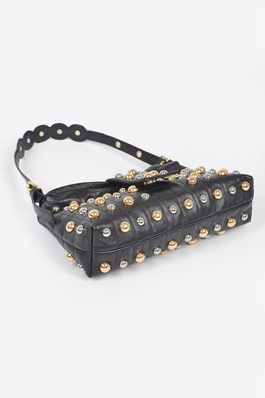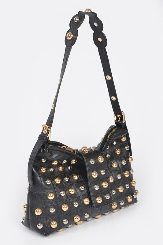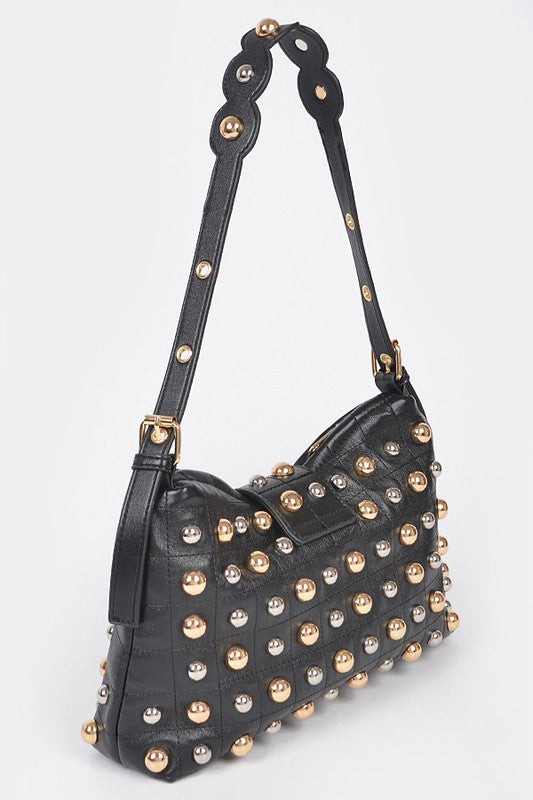 Elevate your style with our Mix Color Studs Fashion Shoulder Bag. Its unique mix of colors and stud detailing adds a stylish touch to any outfit. Stay organized with multiple compartments while looking effortlessly chic. Upgrade your wardrobe with our must-have shoulder bag.