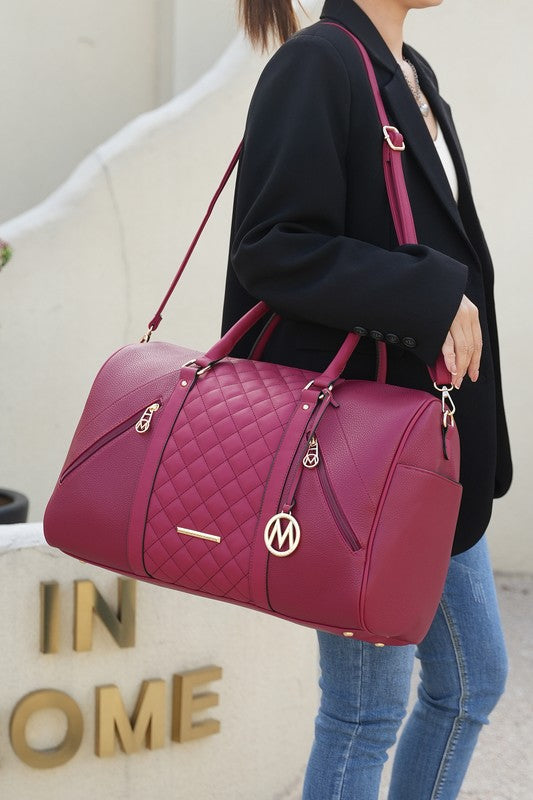 Embrace luxury with the MKF Collection Allegra Women's Duffle by Mia K. This beautifully crafted duffle features a sophisticated design and premium materials, perfect for elevating your travel style. With its spacious interior and multiple pockets, it offers both practicality and elegance.