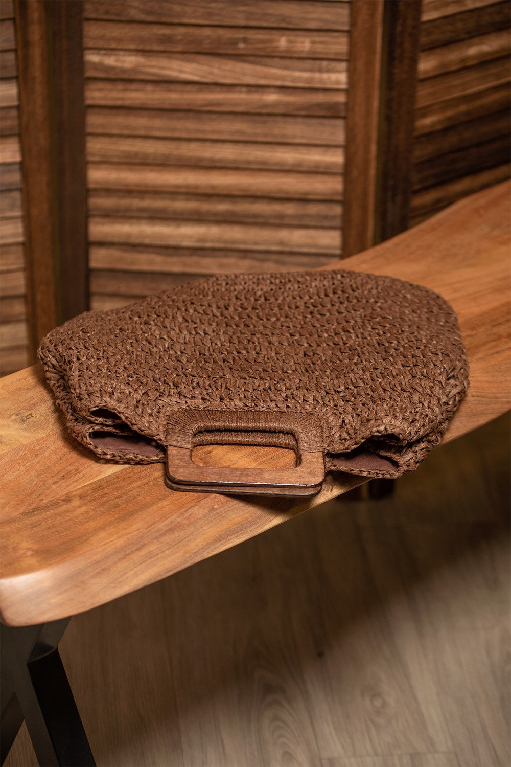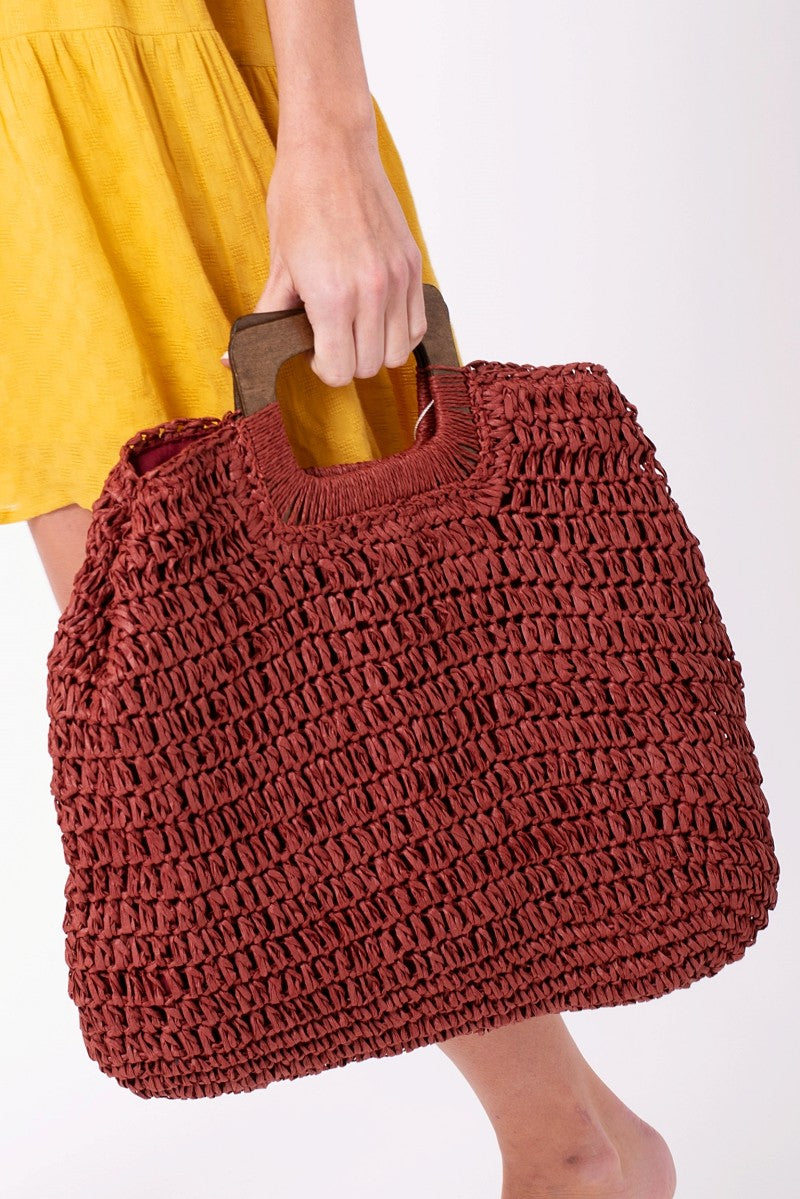 Natural Straw Crochet Bag with Wooden Handle Purse