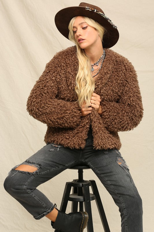 Embrace the thrill of the unknown with our Open Front Fuzzy and Cozy Jacket. Made for strong and daring women, this jacket is designed to keep you warm and stylish, with its soft and fuzzy material. Take on any adventure with confidence and comfort!