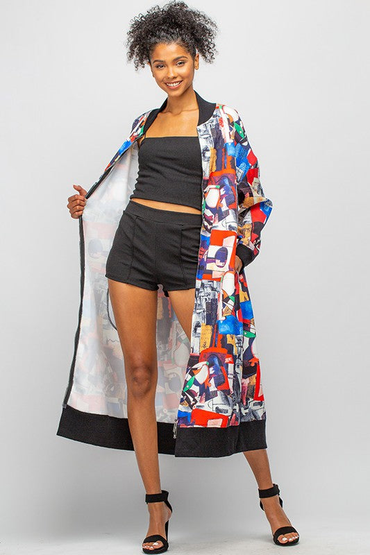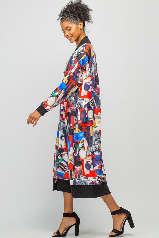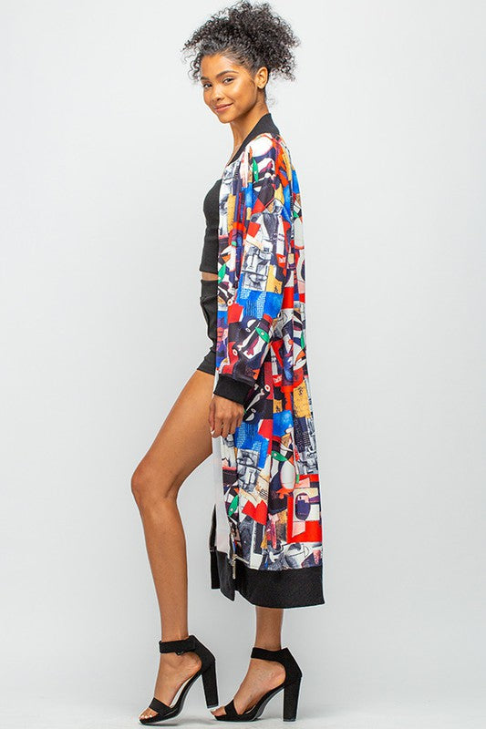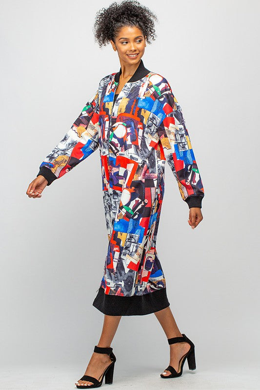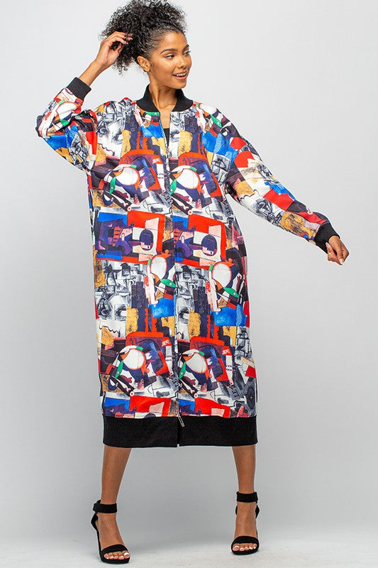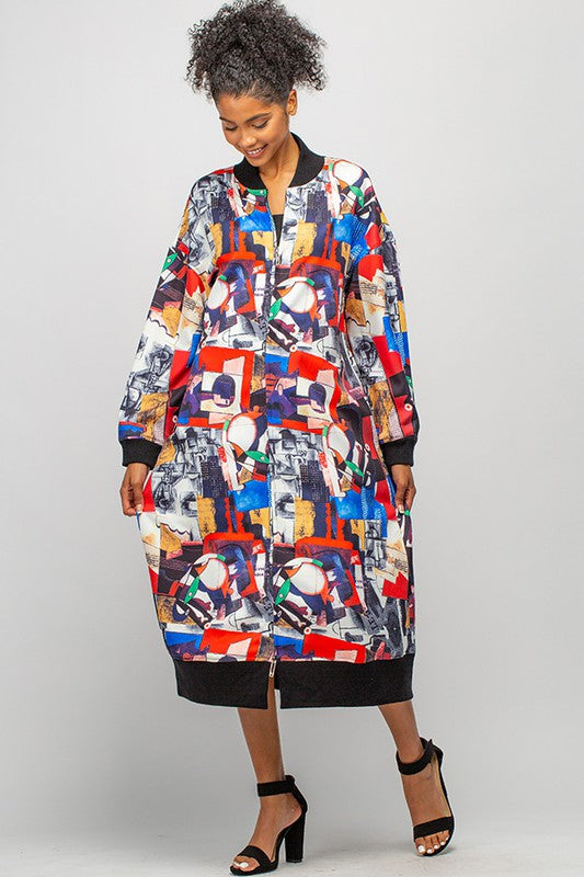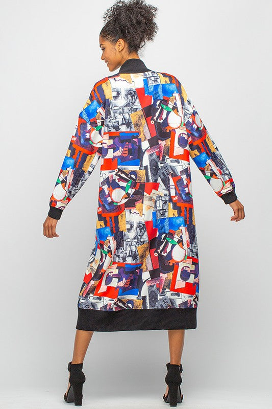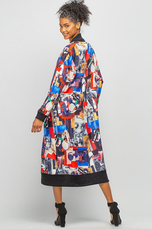 Oversized Multicolored Long Fashion Jacket with Pockets
