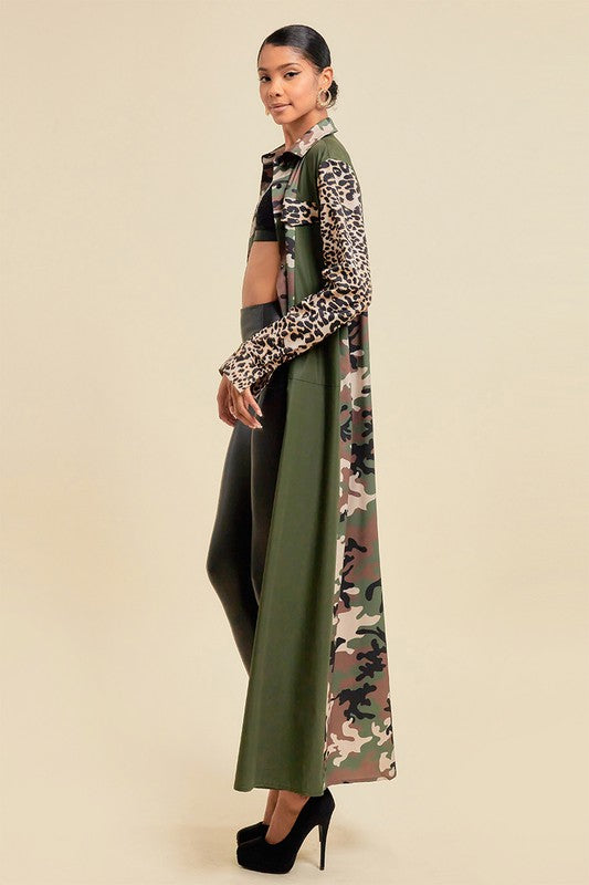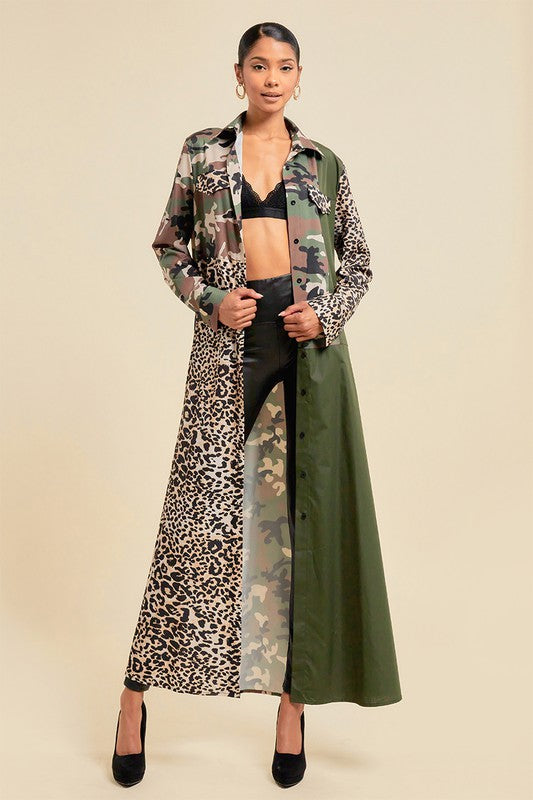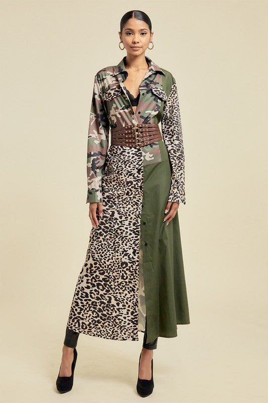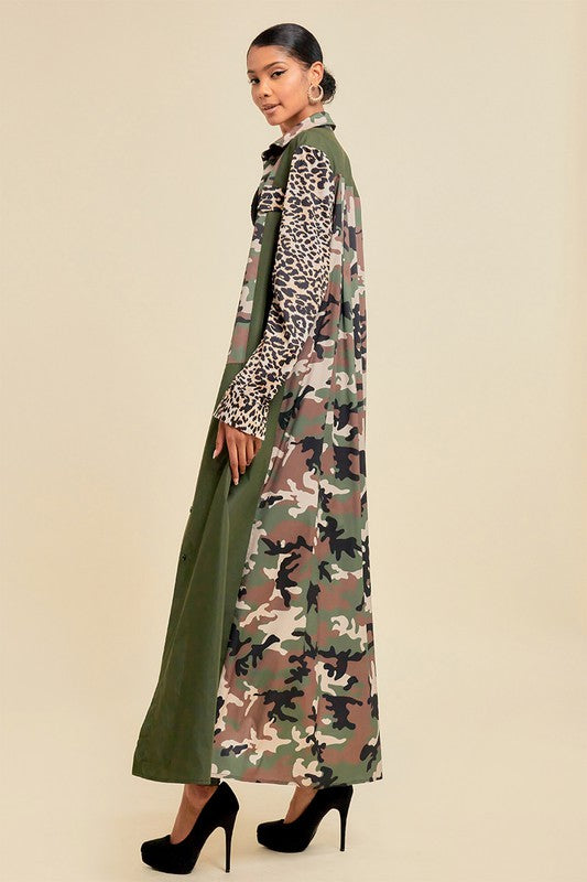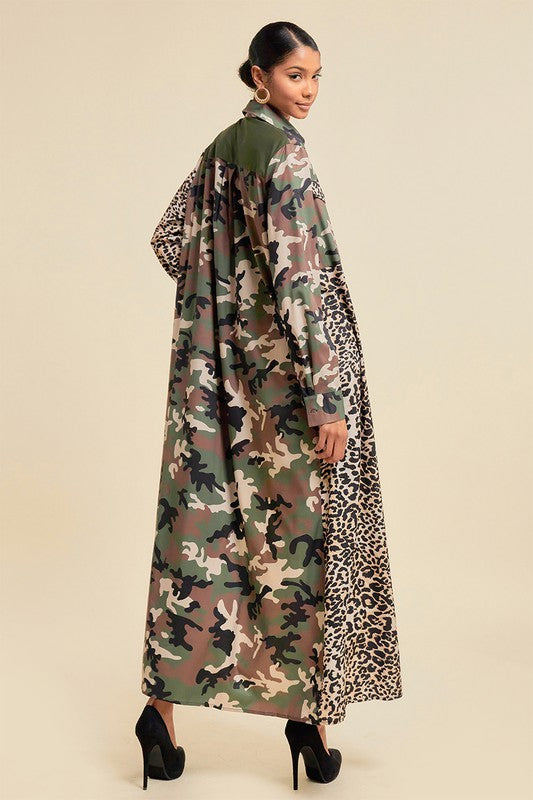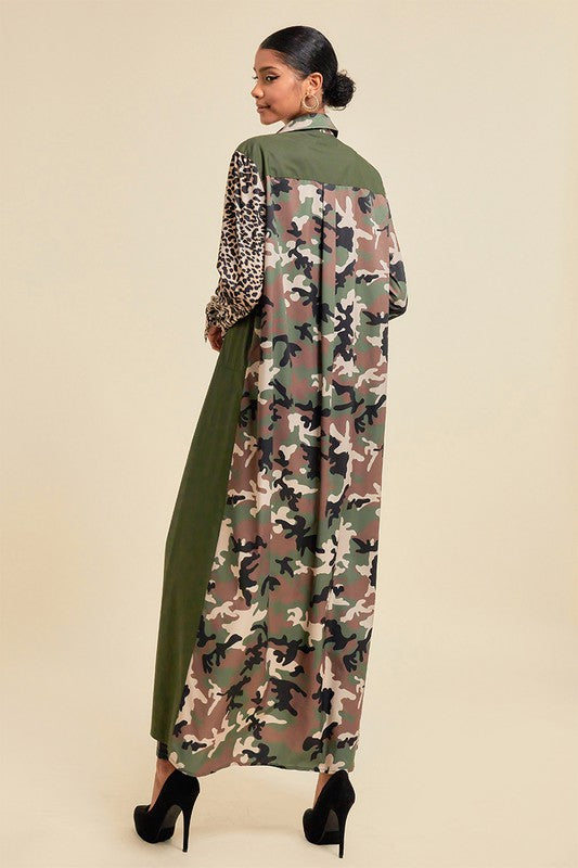 Pattern Blocked Long Camouflage Shirt Dress
