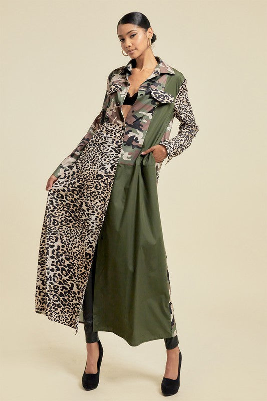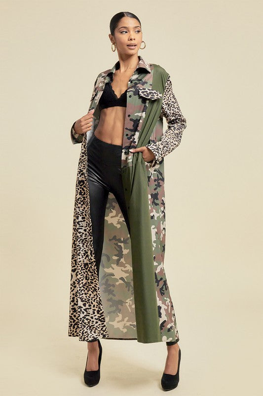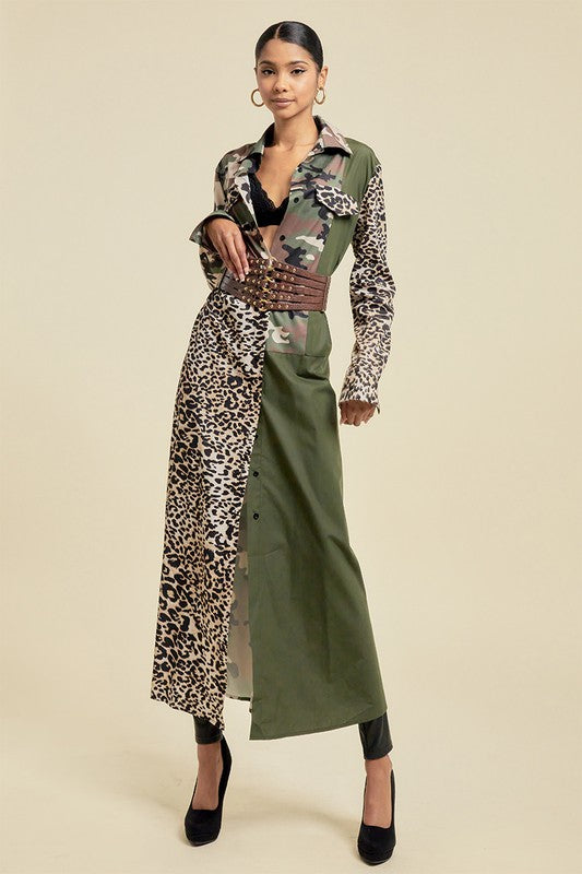 Introducing our Pattern Blocked Long Camouflage Shirt Dress, a must-have addition to any fashion-forward wardrobe. With its unique pattern blocked design, this dress exudes sophistication and exclusivity. Made from high-quality materials, our dress offers both style and comfort. Elevate your style game with this luxurious shirt dress.