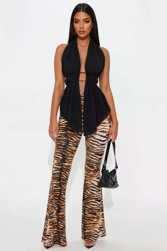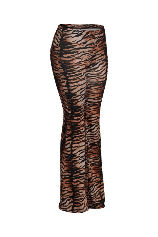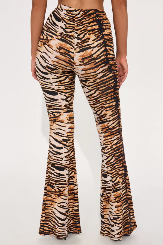Plus Size High Waist Tiger Printed Flare Pants