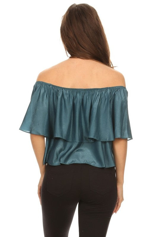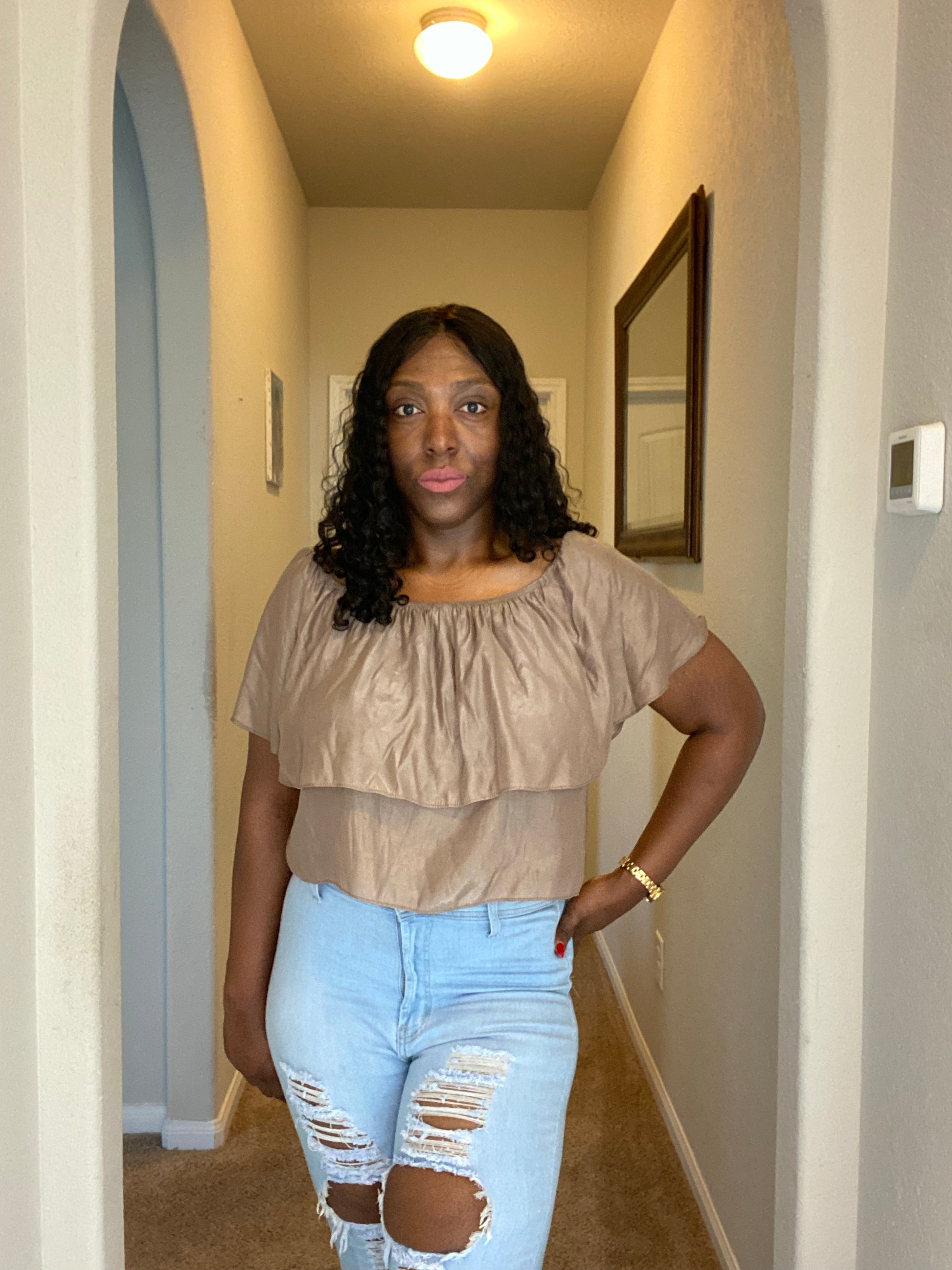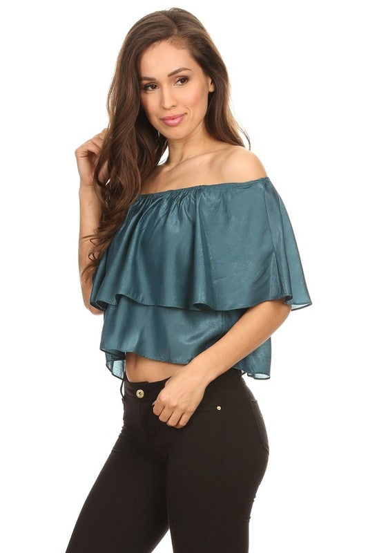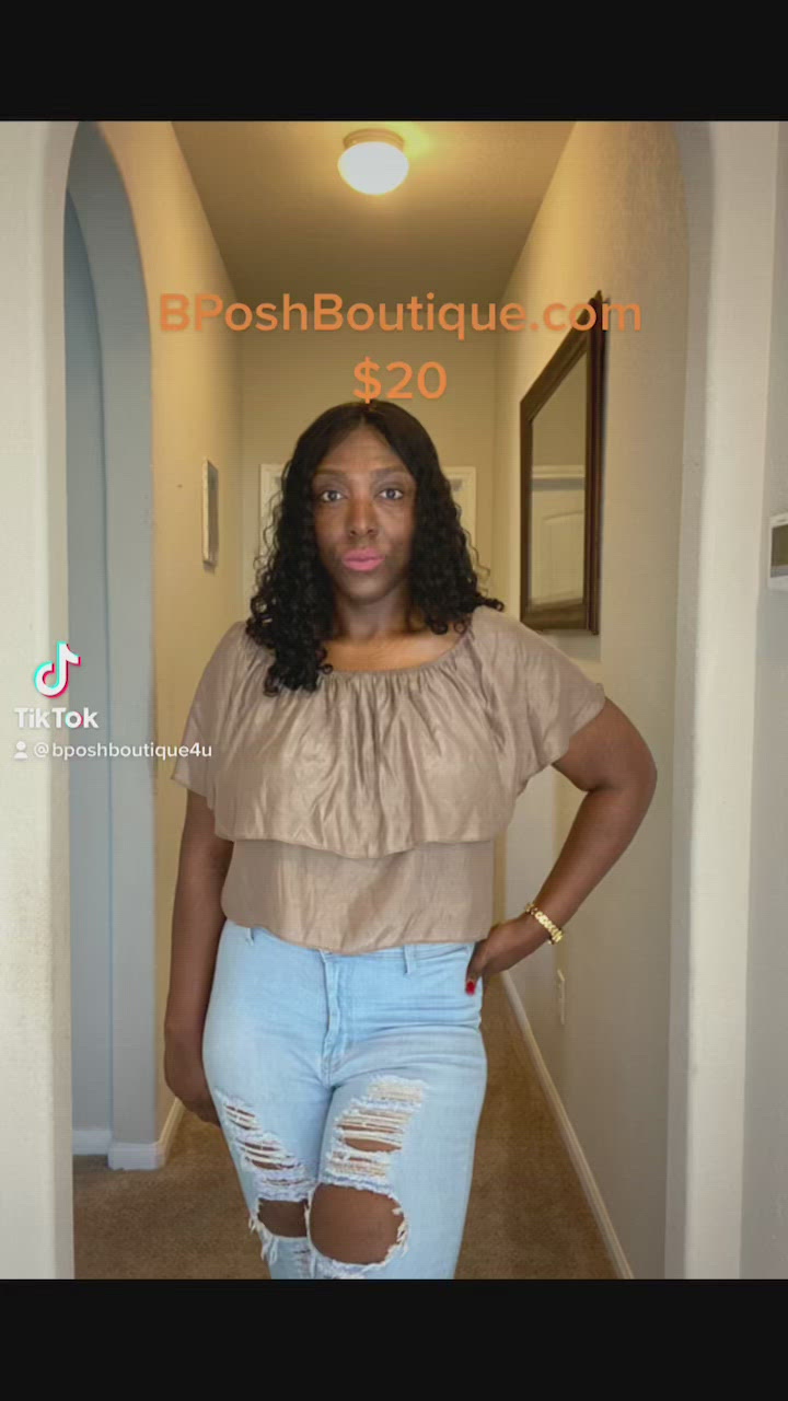 Relaxed Style Mocha Ruffled Blouse Crop Top