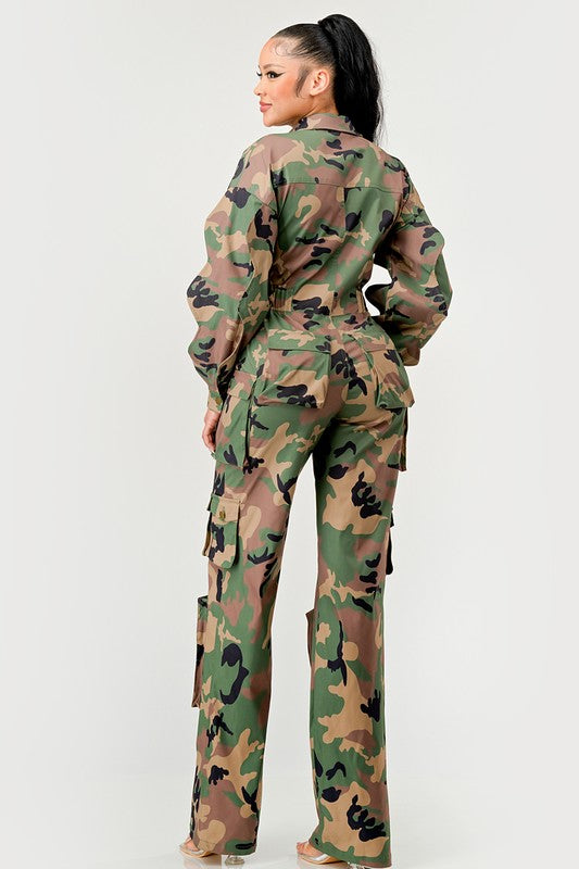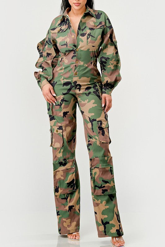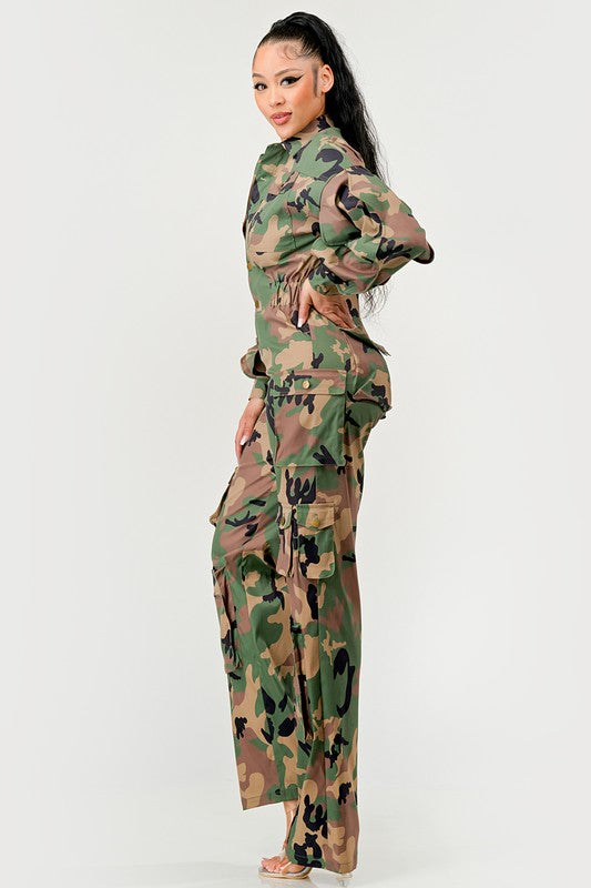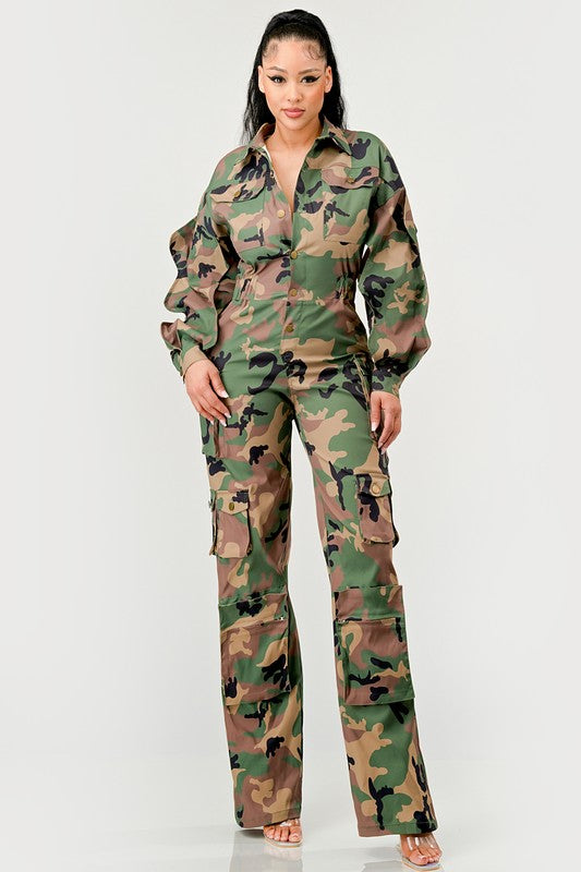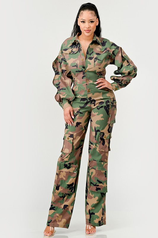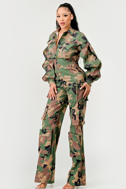 Ruffle Sleeve Jumpsuit -CAMO