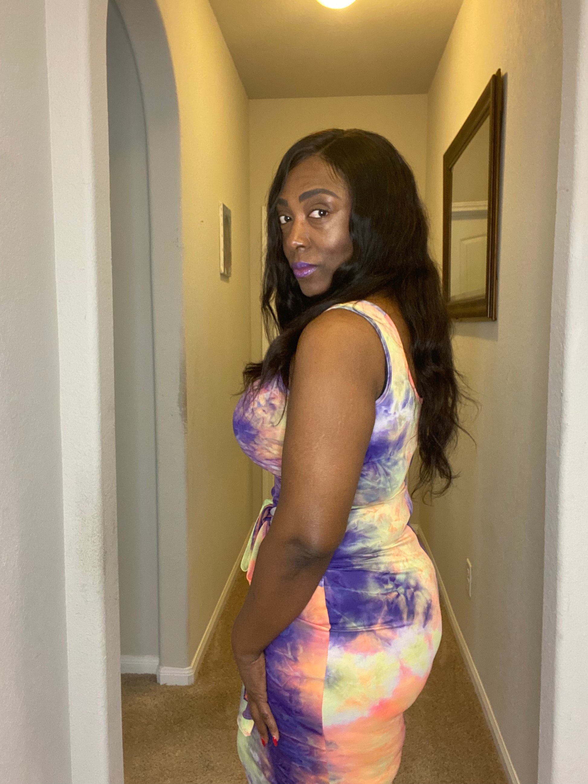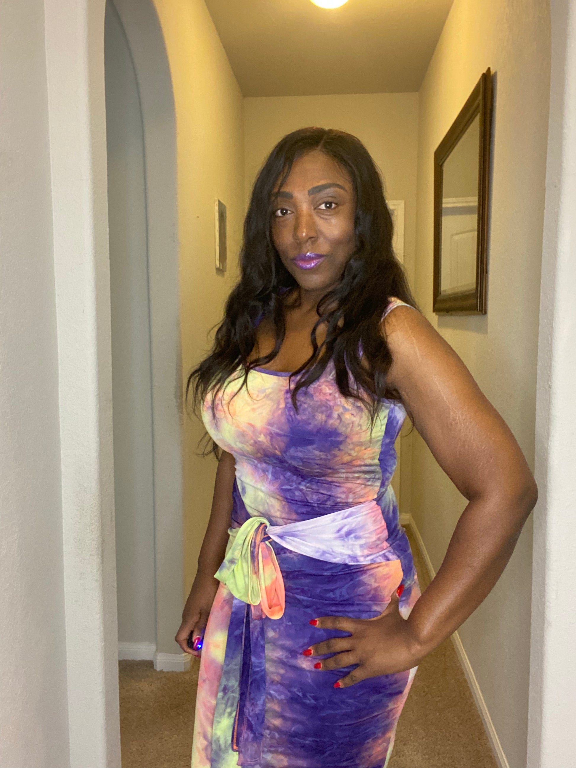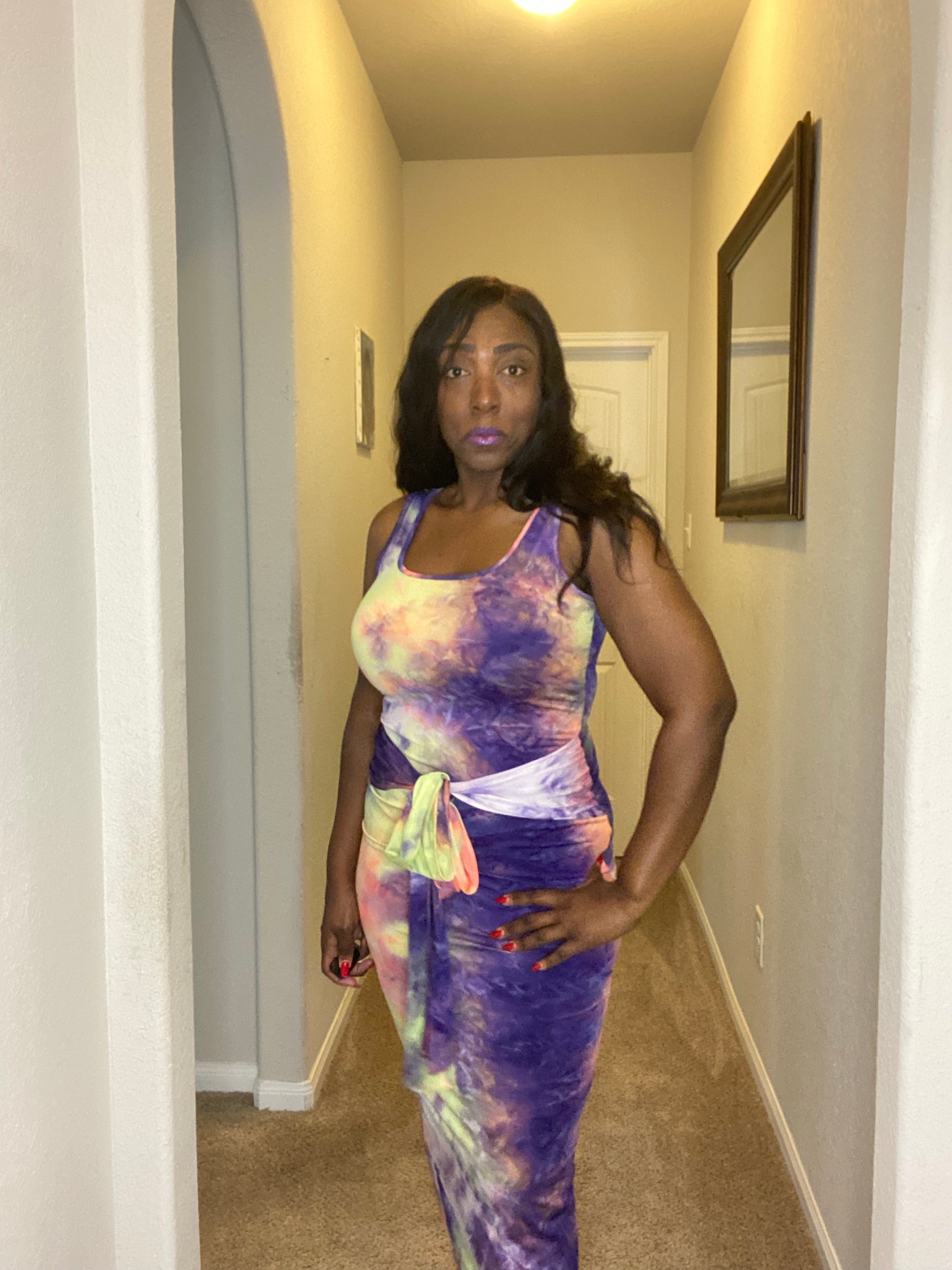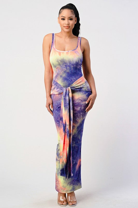 Slay in this tie-dye number, featuring a show-stopping side slit and a tie-waist for an extra dose of drama.