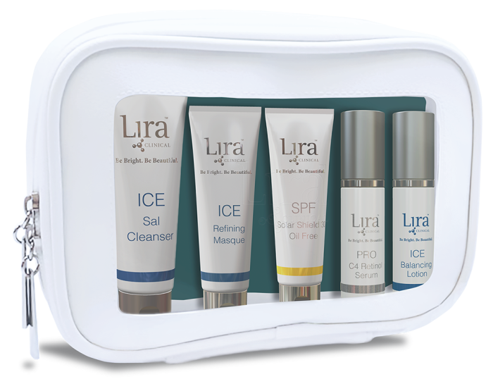 Lira Clinical Travel + Care Kit contains daily essential products to cleanse, resurface, hydrate lift, and protect all skin types.