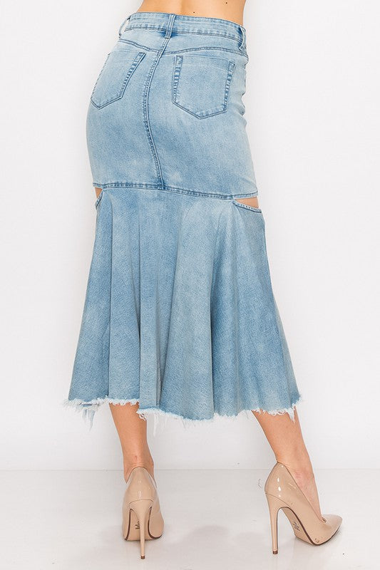 Be a trendsetter with this Women's Vintage Wash Midi Flared Skirt. With a vintage wash and side pockets, you’ll be ready to conquer your day in style. Step up and challenge yourself - take a risk and be bold!