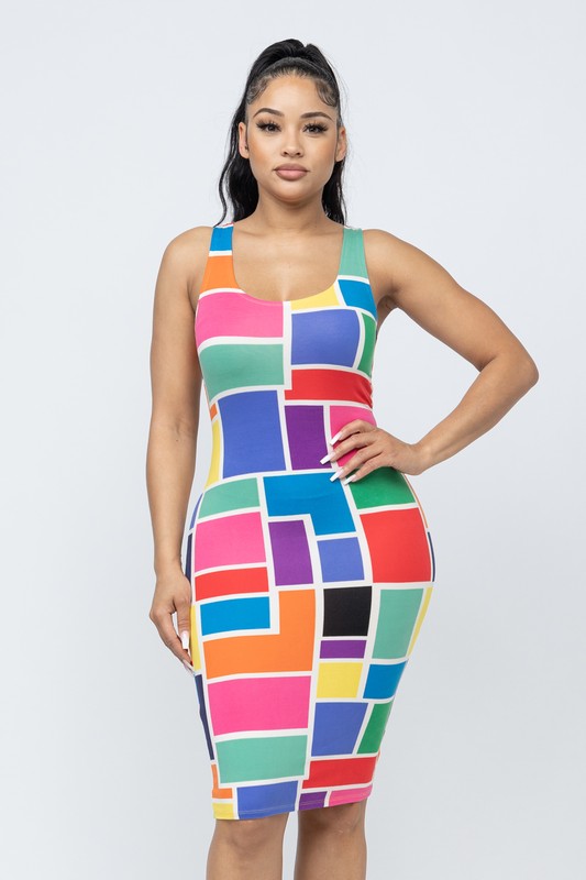 Show your daring and adventurous style with this Color Blocked Print Bodycon Tank Midi Dress. Featuring bold prints that will add a touch of energy to your look, this dress will take you on an unforgettable style journey. So step out and show off your confident side!
