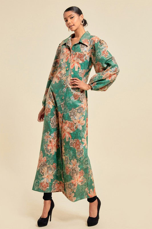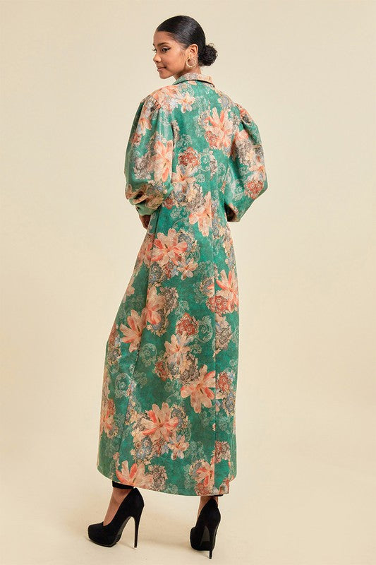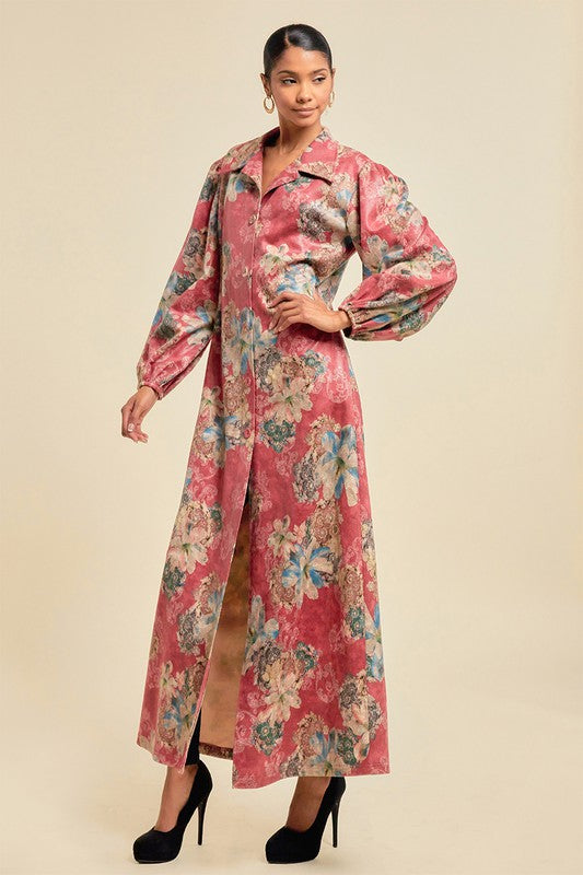 Women's Fall Faux Suede Maxi Jacket with Pockets
