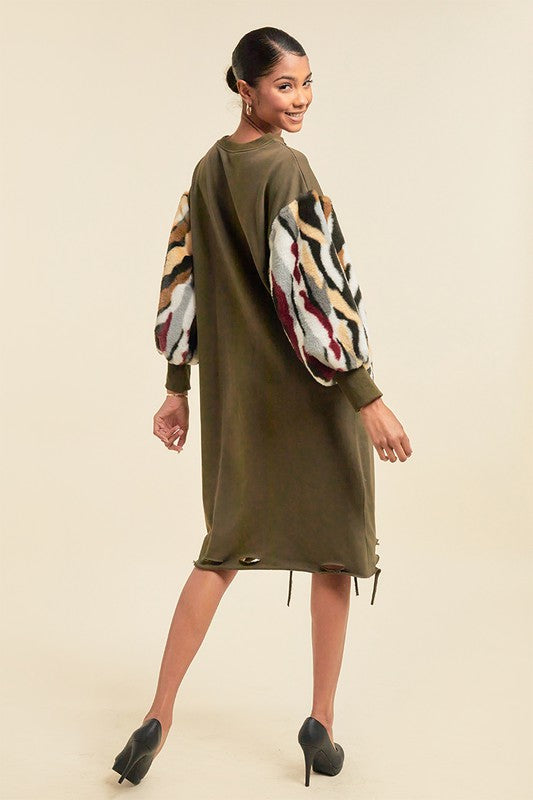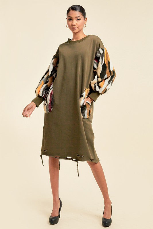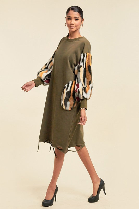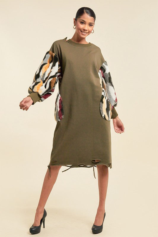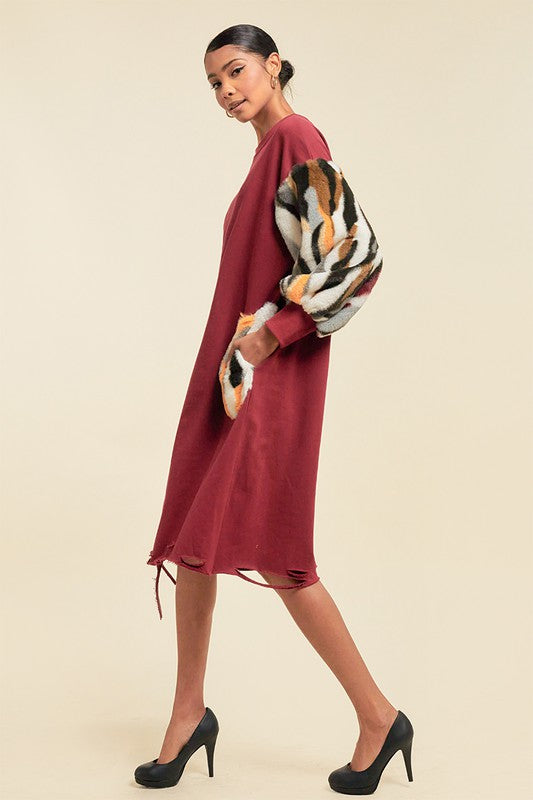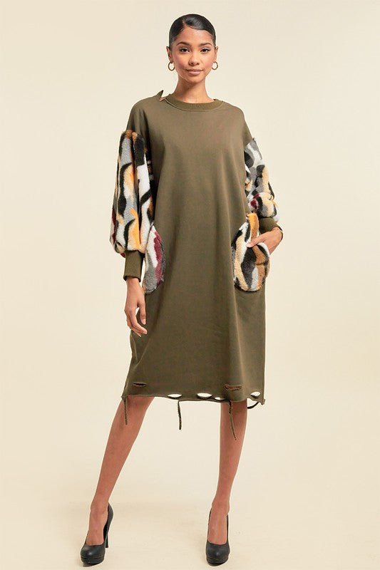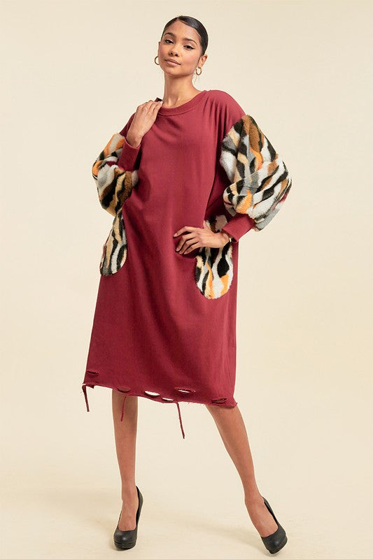 Wrap yourself in cozy charm with this Women's Faux Fur Midi Dress. Its oversized distressed fit offers effortless comfort, while the plush faux fur adds a touch of glamour. Thoughtful pockets keep small essentials close, making this dress perfect for chilly days when you want to look chic and feel snug all at once.