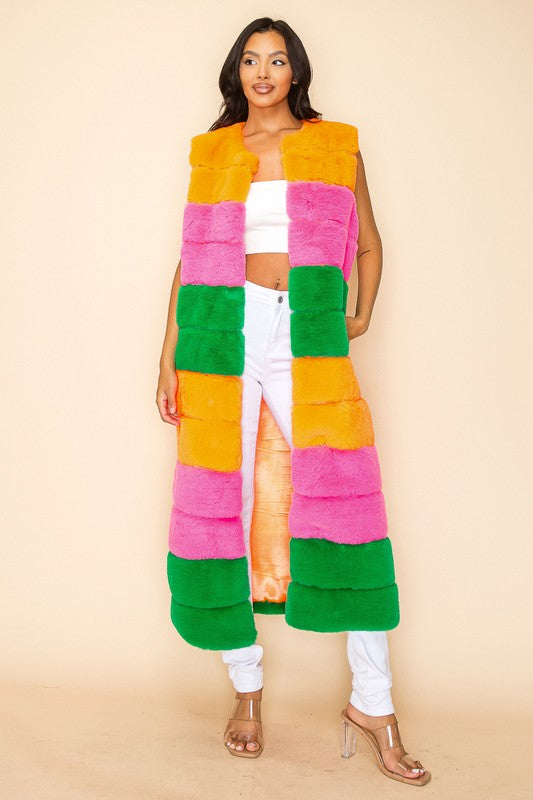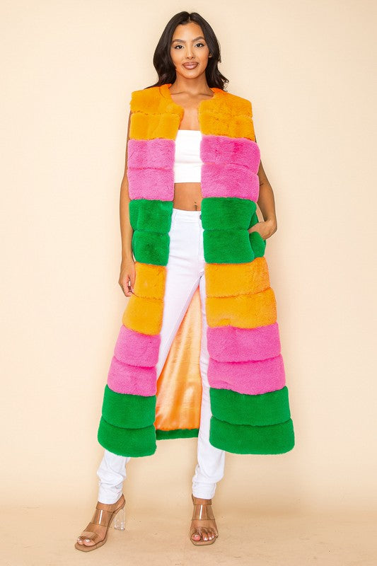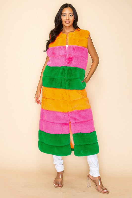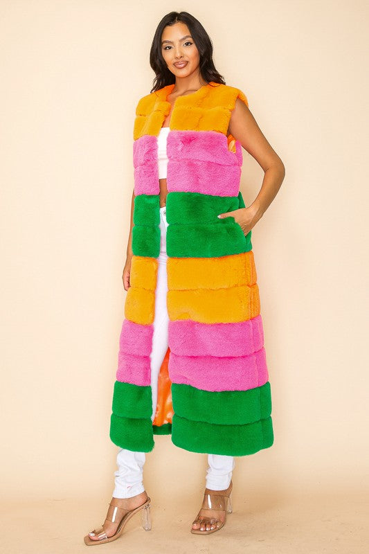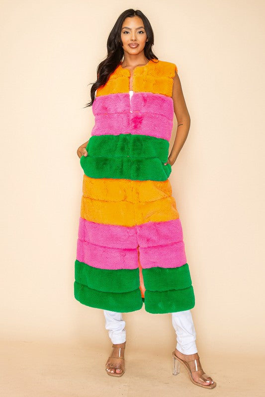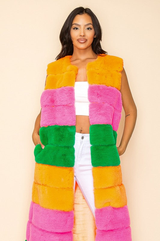 -PREMIUM QUALITY FAUX FUR -COLOR BLOCKED -SOFT FUR -POCKETS