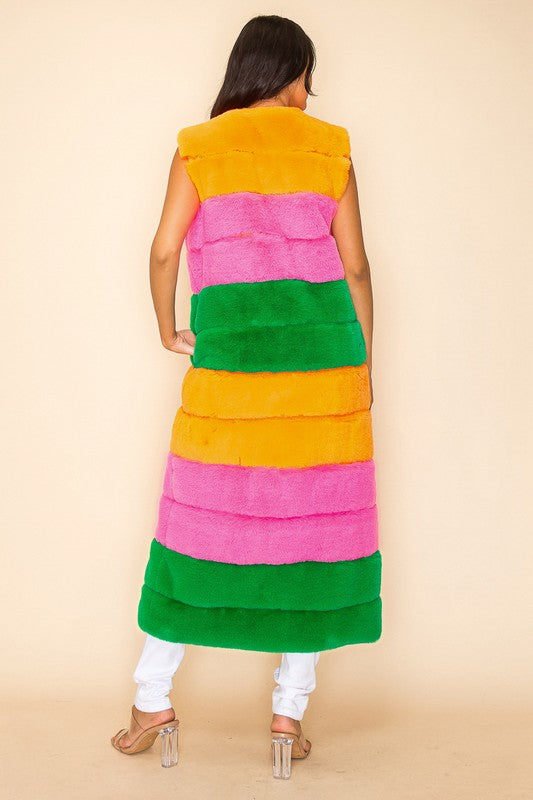 Indulge in luxury with our Women's Soft Faux Fur Maxi Vest. Made from premium faux fur, this vest will keep you warm and stylish. Back by popular demand, this vest is a must-have for any sophisticated wardrobe. Elevate your look with this elegant and exclusive piece.