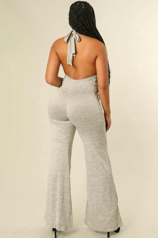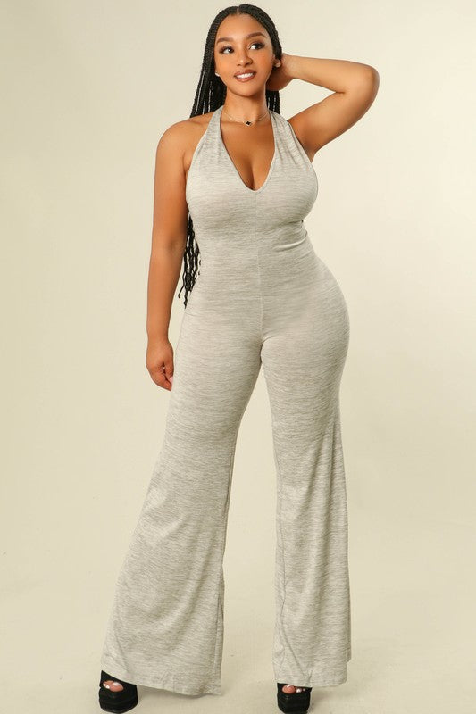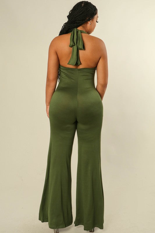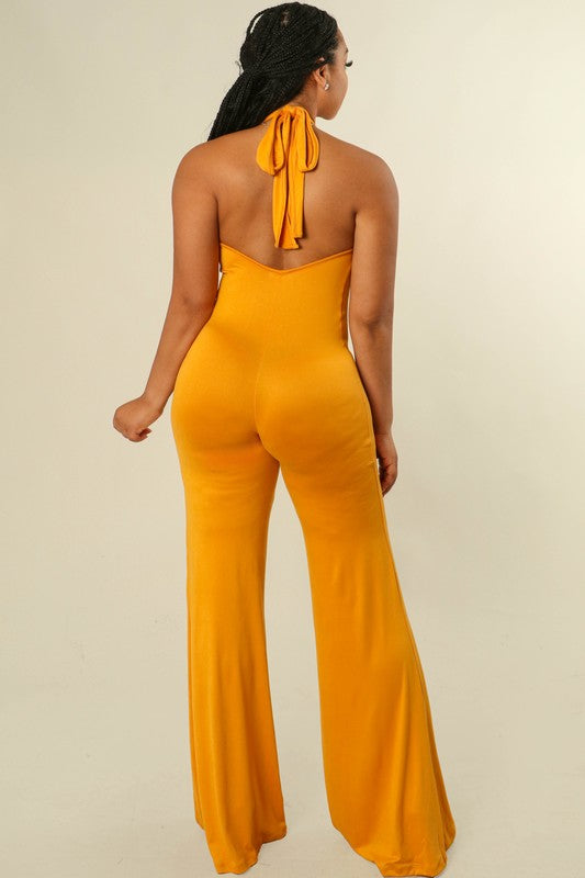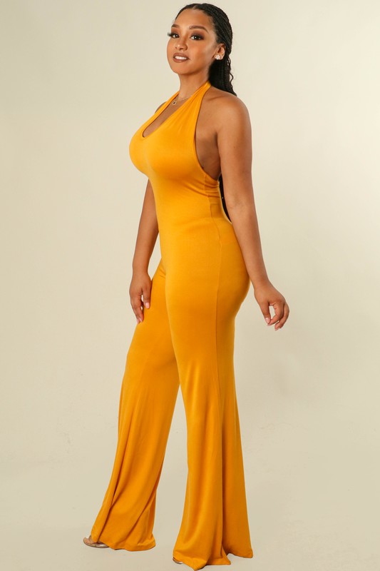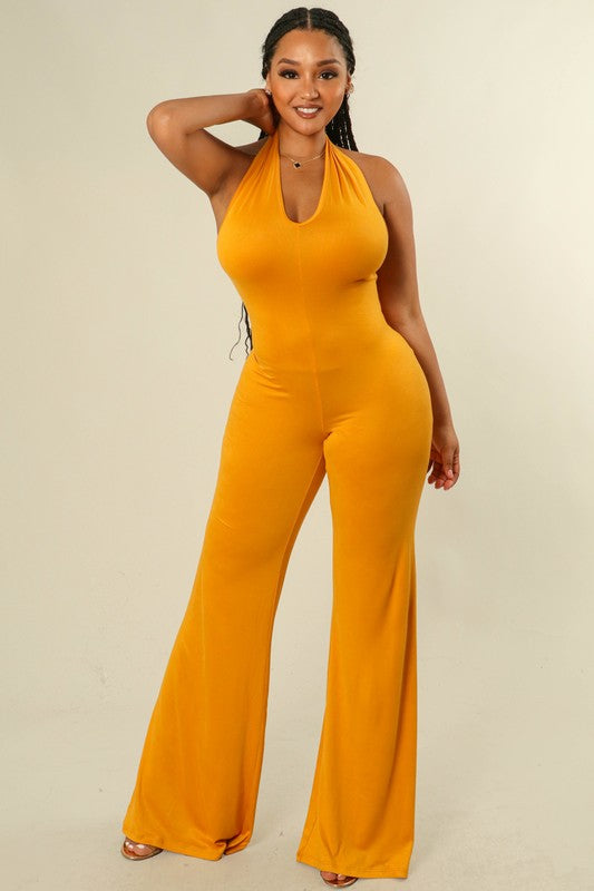 Get ready to rock this wide leg jumpsuit! With a halter neck and solid color, you'll be sure to turn heads. Perfect for any occasion, this jumpsuit is the ultimate fashion statement.