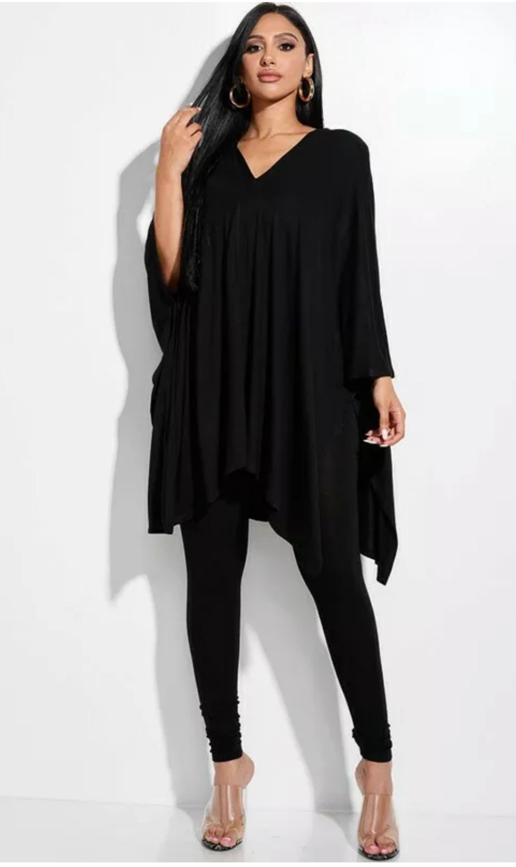 Elegant women's two-piece set featuring a solid heavy rayon-spandex cape