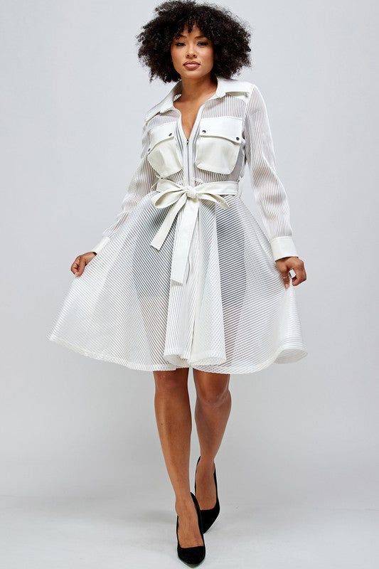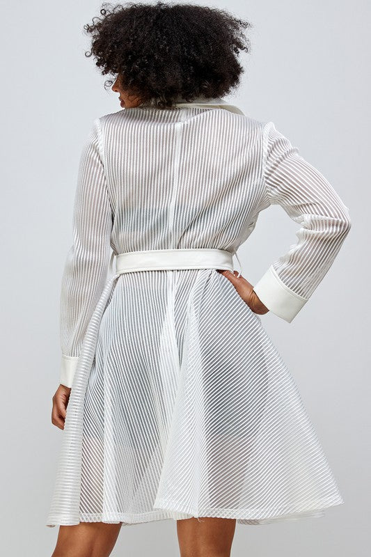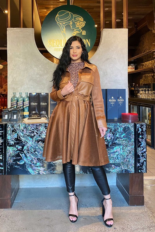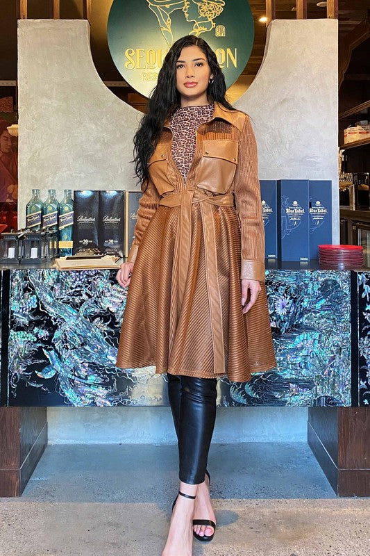 Faux leather (PU)- collar, belt sleeve cuffs, belt