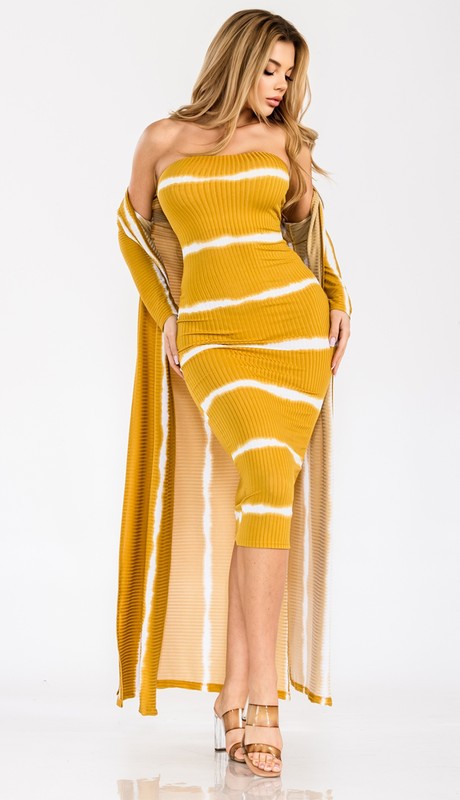Women's Tie Dye Stripe 2pc Tube Dress Set
